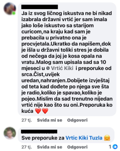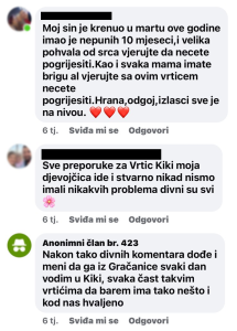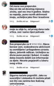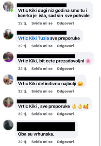Komunikacija roditelj-vrtić funkcioniše na način da svaki od naših vrtića ima službeni broj telefona, putem kojeg odgovorna osoba cijelo radno vrijeme komunicira sa roditeljem i u svakom momentu mu pruža trenutne i iskrene informacije za dijete. Roditelji više puta dnevno mogu kontaktirati vrtić putem Viber, WhatsApp, ili pozivom.