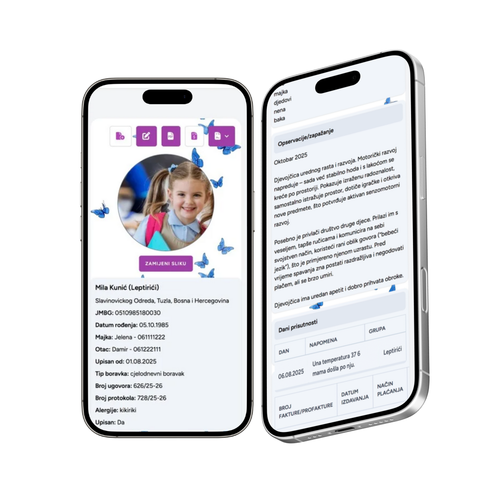 Komunikacija roditelj-vrtić funkcioniše na način da svaki od naših vrtića ima službeni broj telefona, putem kojeg odgovorna osoba cijelo radno vrijeme komunicira sa roditeljem i u svakom momentu mu pruža trenutne i iskrene informacije za dijete. Roditelji više puta dnevno mogu kontaktirati vrtić putem Viber, WhatsApp, ili pozivom.